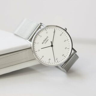 Modern Font Engraving - Men's Architect Zephyr + Steel Silver Mesh